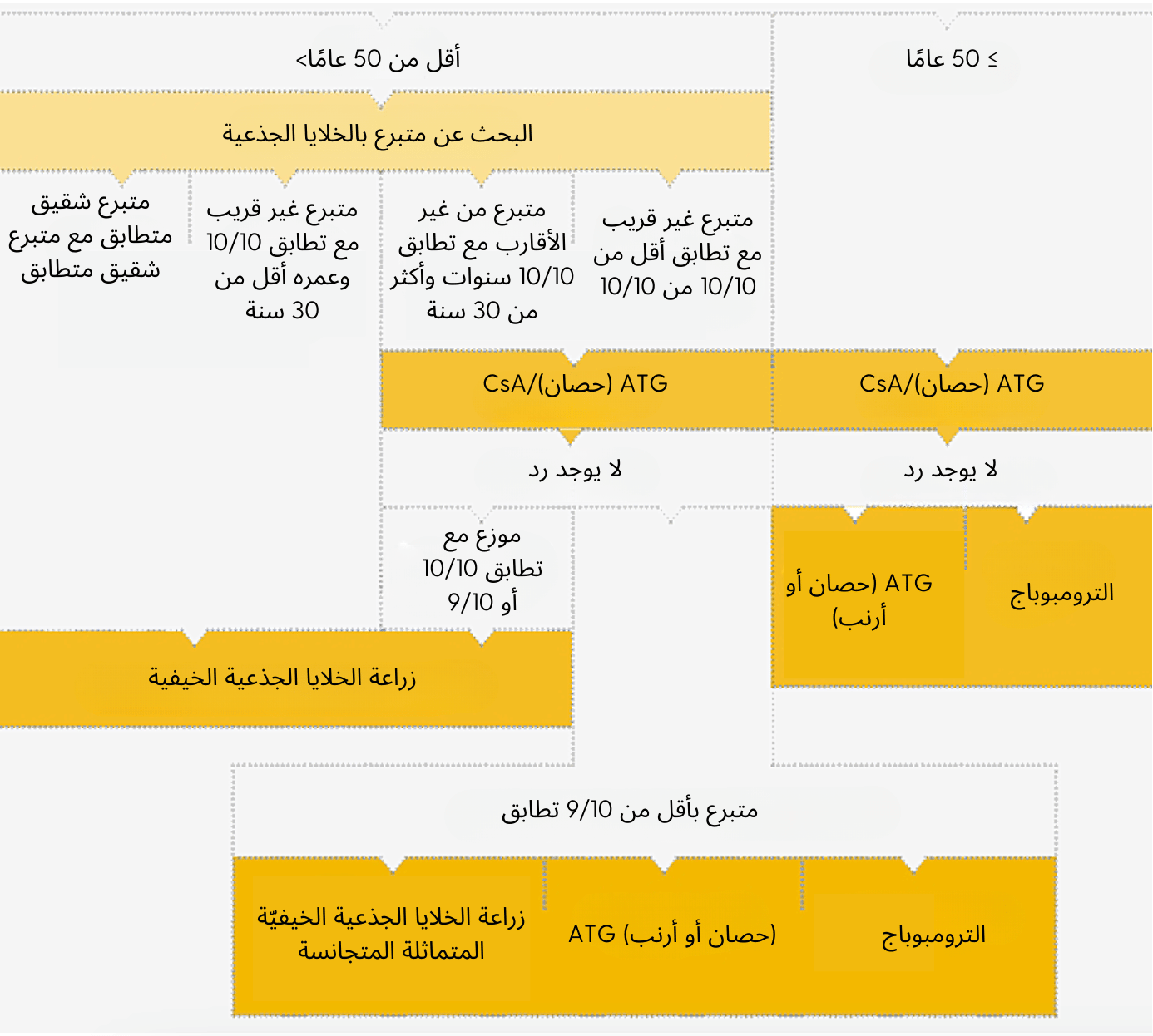 في السنوات الأخيرة، انخفض معدل المضاعفات في عمليات زراعة الأعضاء من متبرع غير قريب متطابق من متبرع غير قريب بشكل كبير. لذلك يتزايد استخدام زراعة الأعضاء من متبرع غير متطابق من متبرع غير قريب متطابق مع HLA للمرضى الذين تقل أعمارهم عن 50 عاماً ولم يستجيبوا للعلاج المثبط للمناعة.