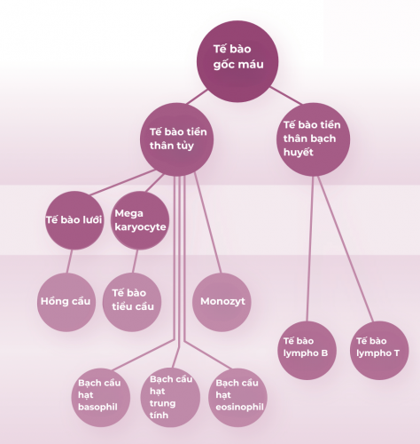 Tủy xương chứa một số lượng rất nhỏ tế bào gốc máu, từ đó hình thành các tế bào máu mới. Không chỉ các tế bào trưởng thành hoàn toàn được sản xuất, mà các tế bào gốc mới cũng liên tục được sản xuất để duy trì chu kỳ tái tạo liên tục này.
